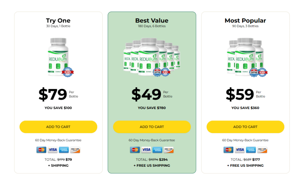 Currently, ReduBurn is backed by a 60-day money-back guarantee, giving you ample time to try it risk-free. Free shipping is also available on select multi-bottle packages, along with exclusive discounts for new customers.
